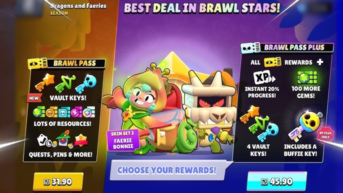 • Brawl Pass : Temel Peri Bonnie kostümü, sezonun Brawl Pass ödül yolunda ilerleyerek