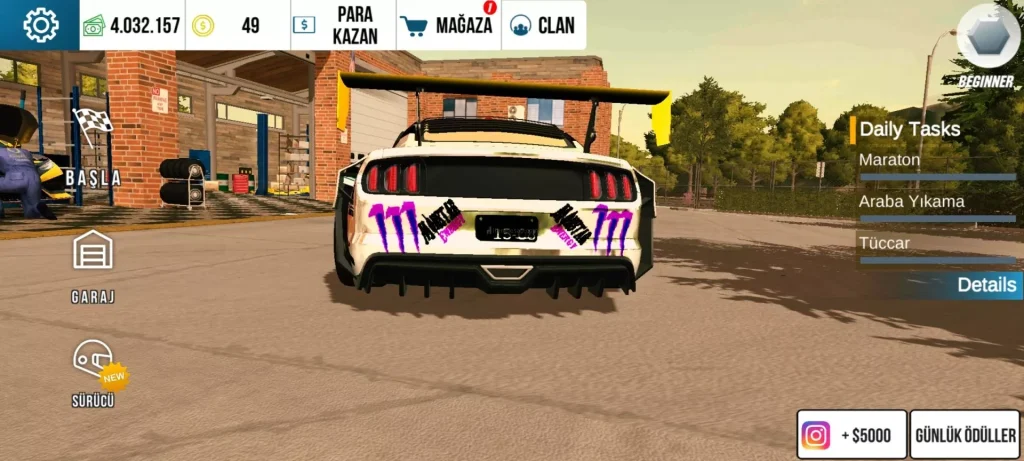 - Market/Garaj Bölümüne Gir: Sağ üstte veya ortada bulunan “Add Money” (Para Ekle) veya